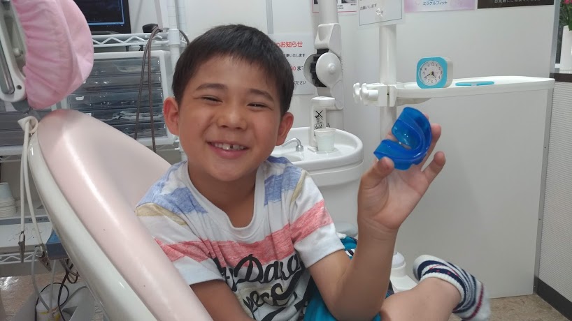 2枚目の写真右側に拡大装置が写っています。上あごが小さかったため広げました。今日からは、プレオルソタイプⅠSS サイズソフトの出番です。