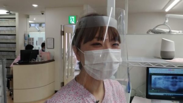 さて、仲町歯科医院では細かく飛び散る水などから飛沫感染を防ぐためにフェイスガードを着用しています!