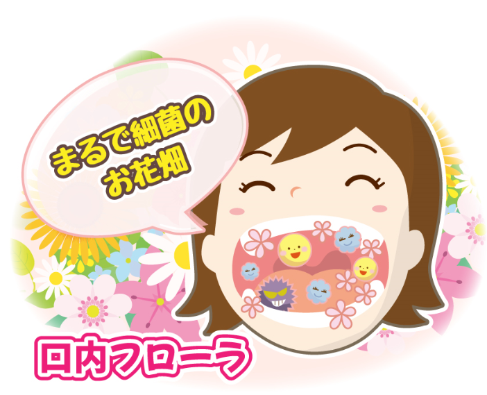 お口の中には何千種何億個以上もの細菌が生息しており、それらが種類ごとにまとまっている様がまるでお花畑(Floraー フローラ-)のように見える…